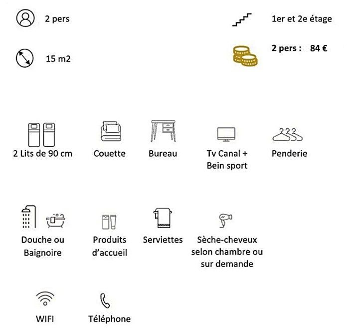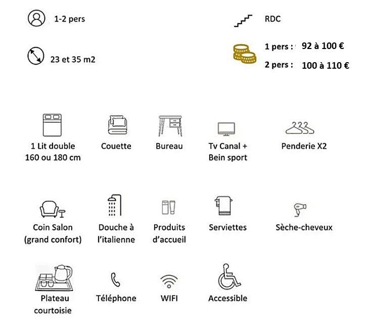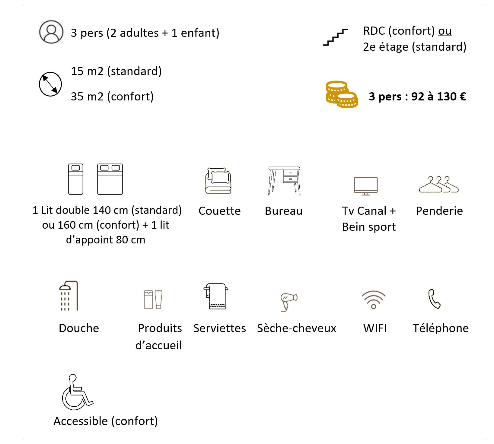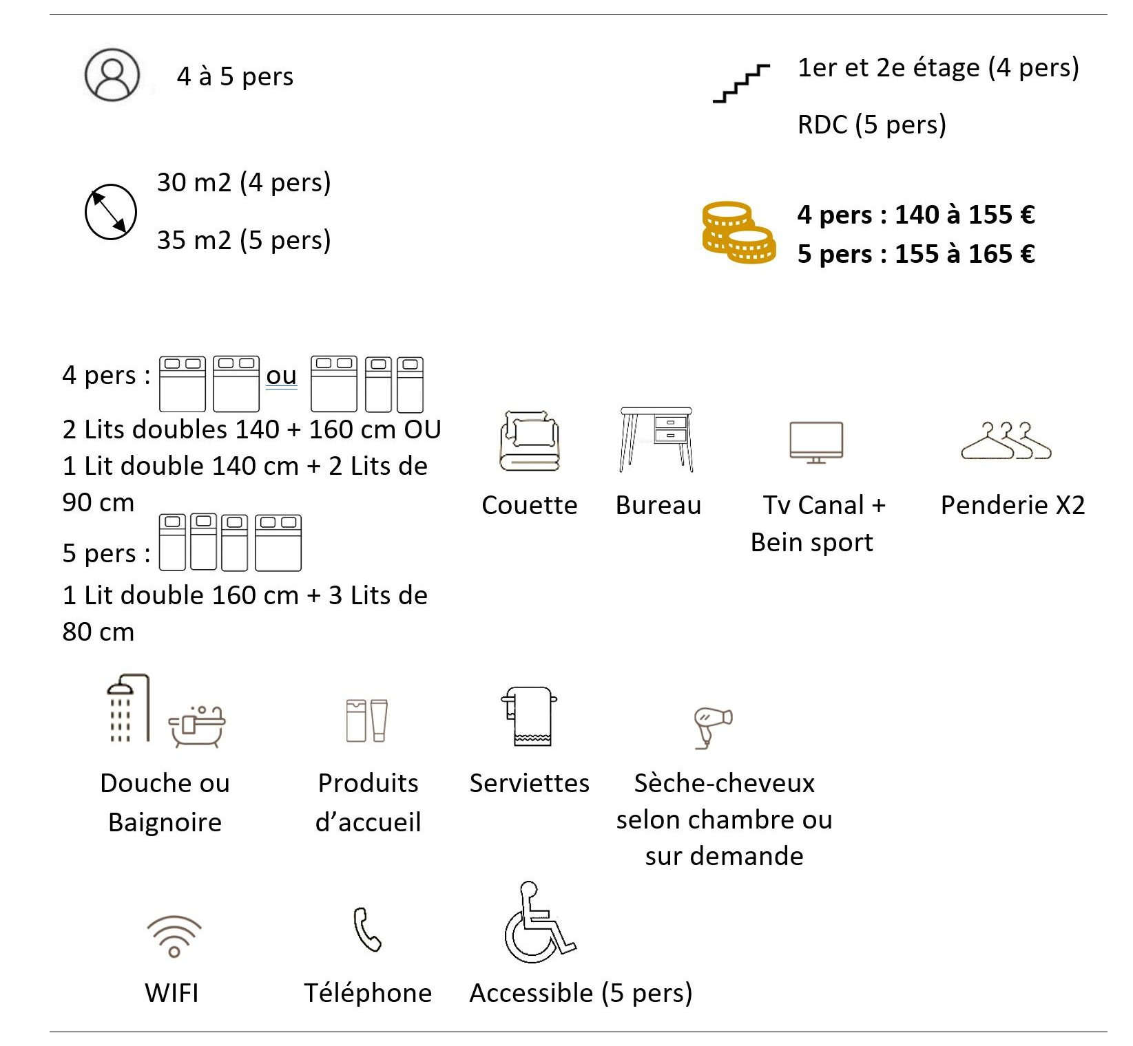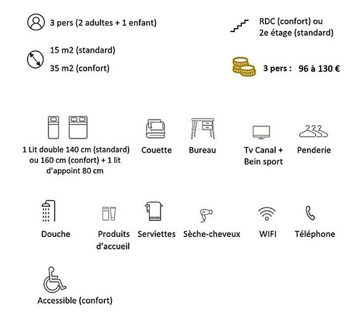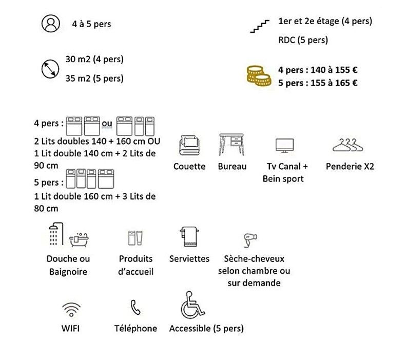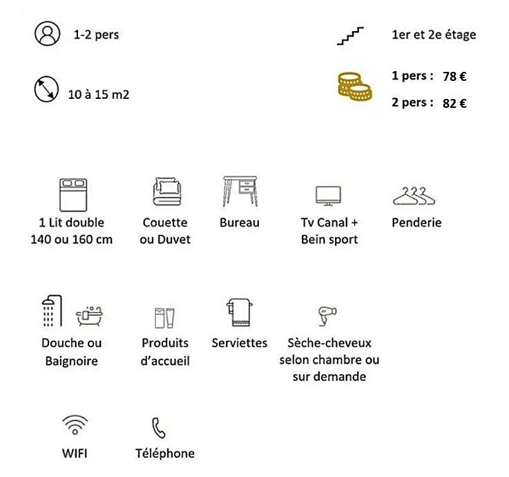 Idéales pour vos séjours de tourisme, famille, détente ou affaire, vous y trouverez une gamme complète de chambres: